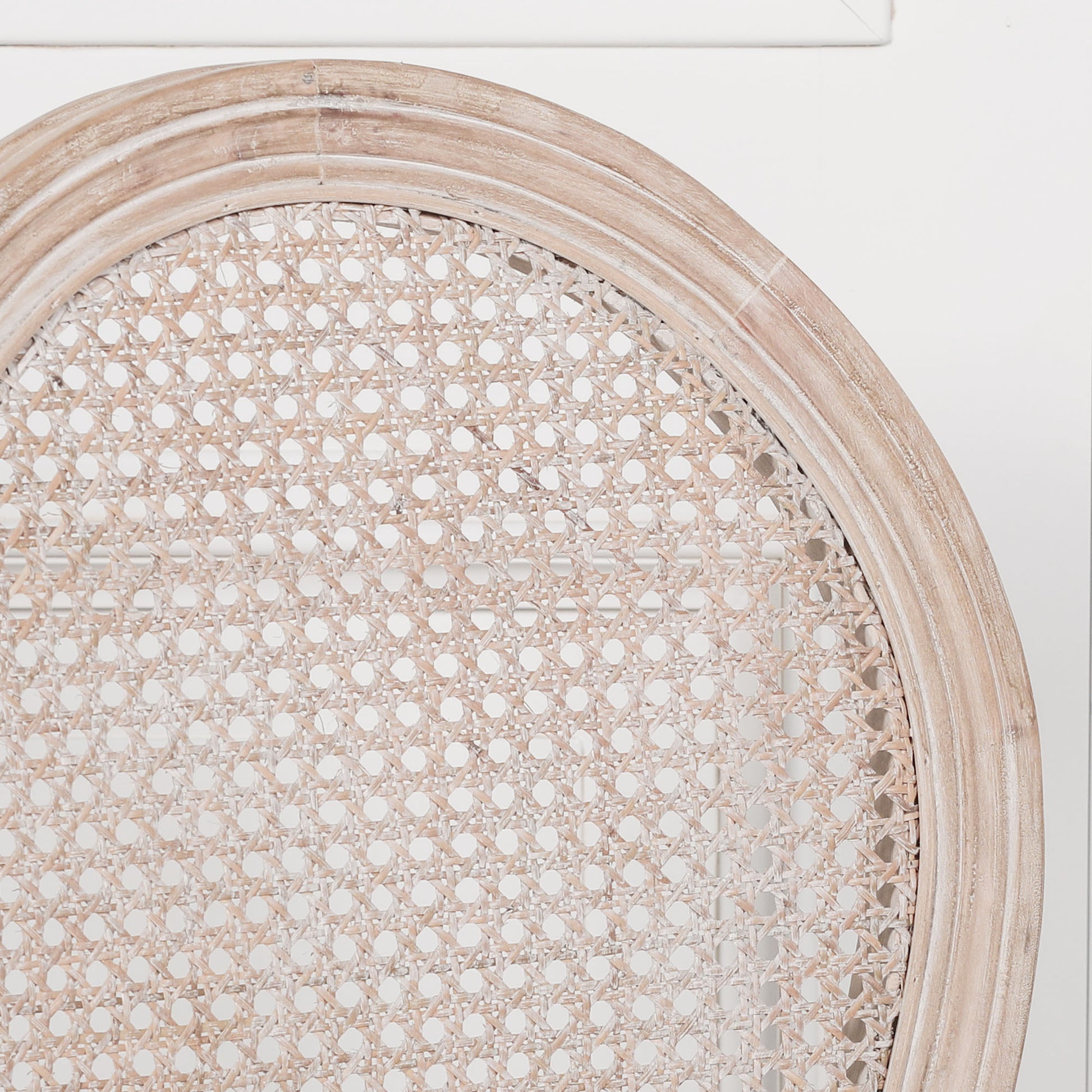 Light Wooden Louis dining chair in wooden finish with light wood washing added to the detail of the frame. Finished with a linen upholstered seat top. Dining chair is stackable.