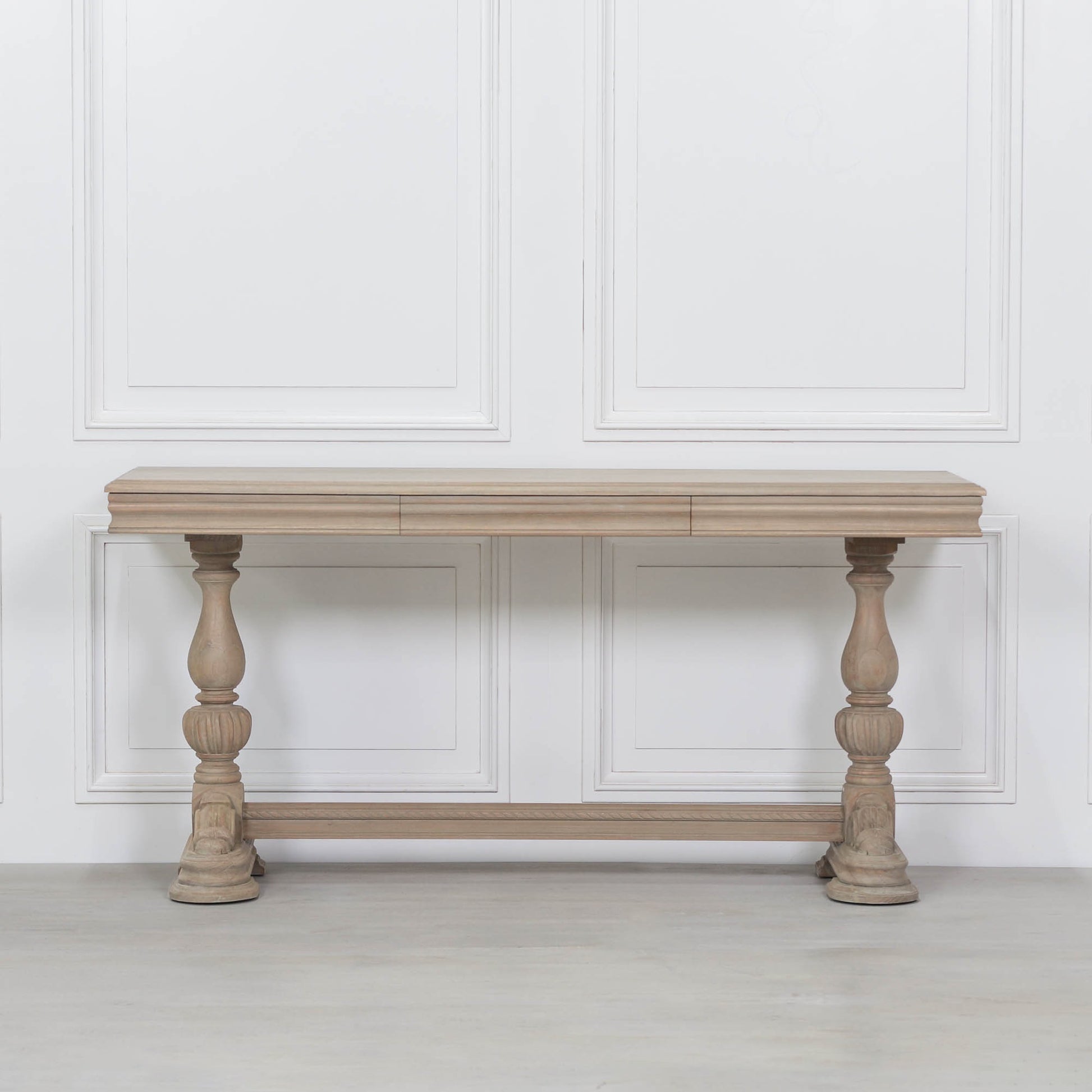 Rustic Wooden Intricate Carved Spindle Console with Drawer